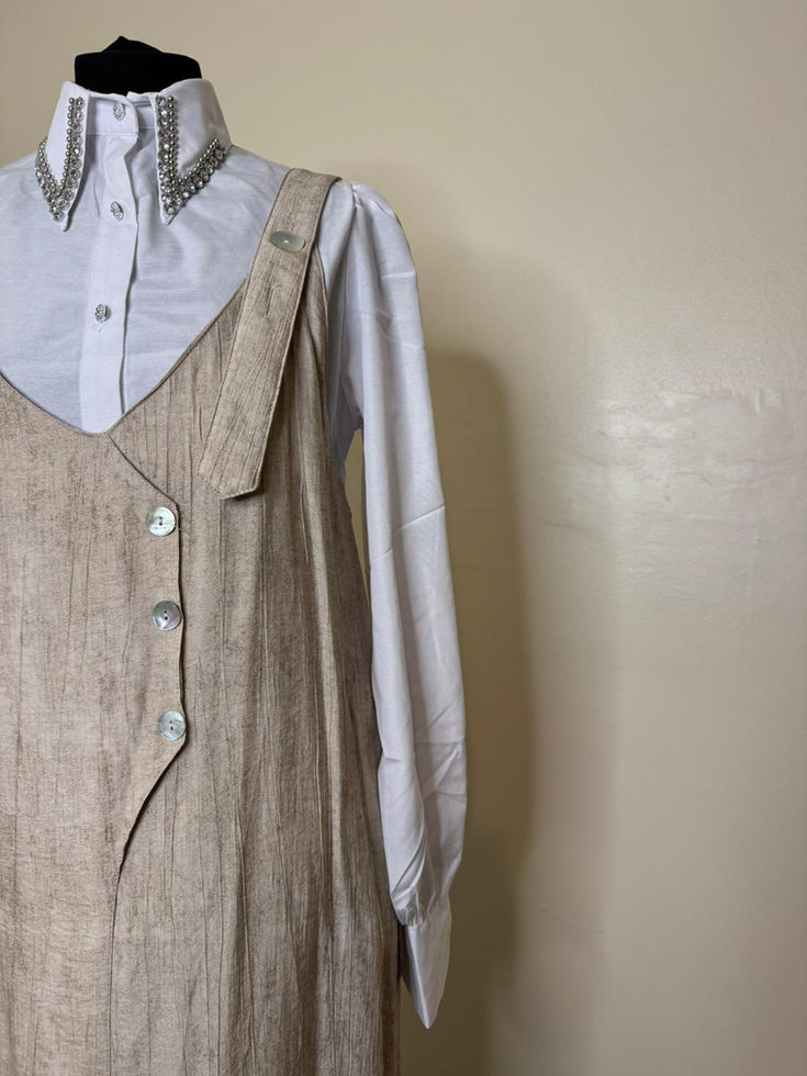 Fabric: Linen-style dress + breathable cotton-blend blouse — all-day comfort